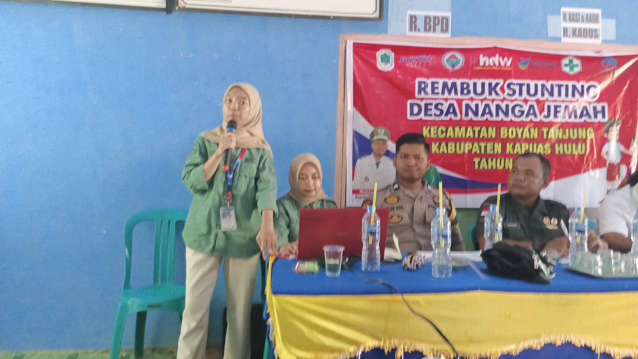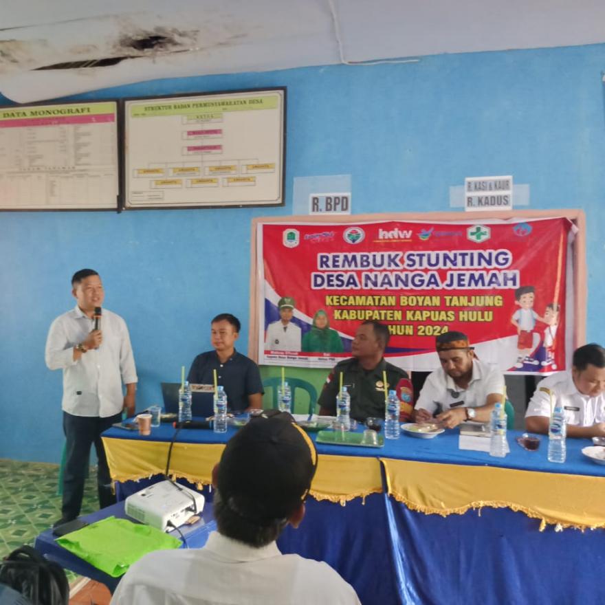 Pemerintah Desa hari ini rabu (3/7/2024) melaksanakan rembuk stunting bertempat di aula Kantor Desa Nanga Jemah dimulai pukul 08.30.Wib yang melibatkan pesreta dari berbagai komponen Masyarakat antara lain Kader Posyandu,KPM,Tim Penggerak PKK Desa Badan Permusyawaratan Desa (BPD),Ketua RT, Ibu Hamil/Menyusui Keluarga yang memilik balita,Remaja Putri,Unsur Pemuda,Babinsa.Bhabinkamtibmas serta Pendamping Desa,Pendamping Lokal Desa,Kepala Desa Nanga Jemah,Puskesmas Boyan Tanjung, diawal kegiatan mengungkapkan, stunting Adalah kondisi gagal tumbuh pada anak balita akibat kekurangan gizi kronis sehingga anak lebih pendek tidak sebanding dengan usianya. Kekurangan gizi terjadi sejak bayi masih dalam kandungan sampai pada masa awal kehidupan setalah lahir, dan akan di ketahui setelah anak berusia 2 tahun Kata Mahrus Effendi selaku Kepala Desa Nanga Jemah.